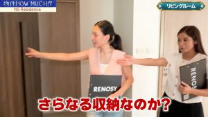 石井エリ:本当に収納が多いですね、ここの物件は!左はバッグとかをね、置けるような感じで、右はお洋服をたくさんしまえたり、大きいからスーツケースも入るね!